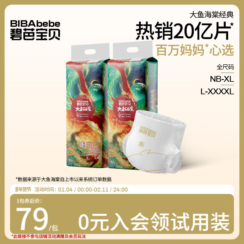 碧芭宝贝大鱼海棠纸尿裤拉拉裤超薄透气尿不湿NB-4XL码