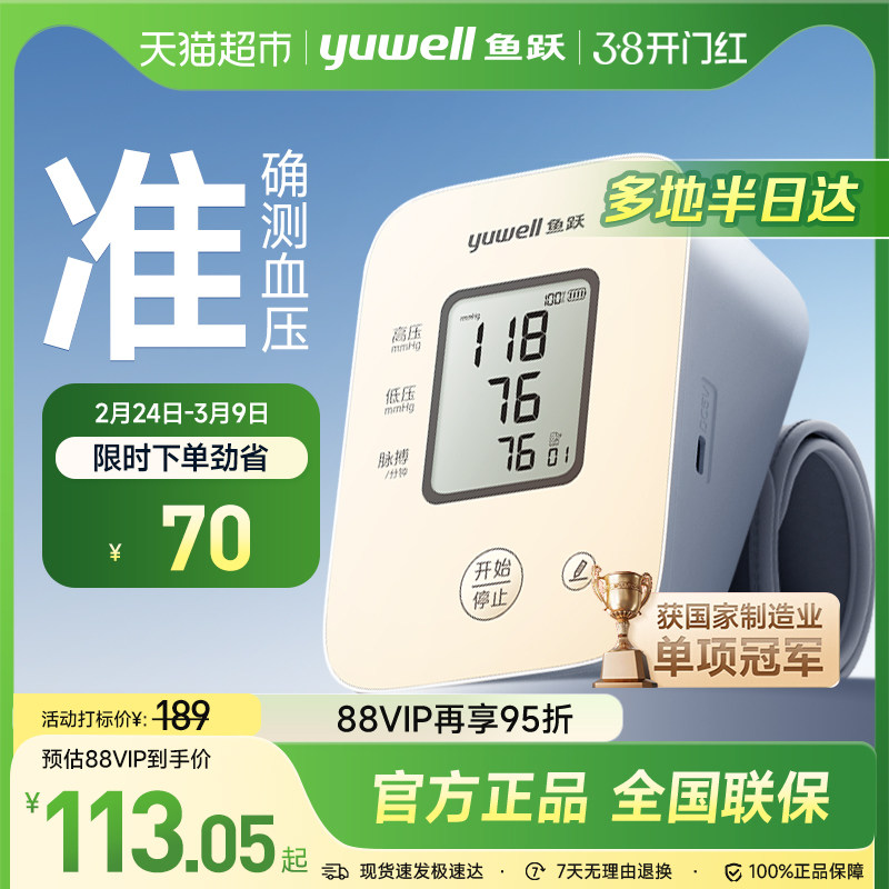 鱼跃血压计臂式高精准血压测量仪家用充电语音检测高血压仪医用