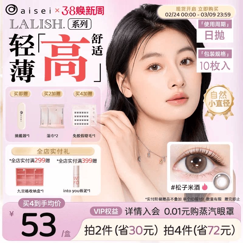 aisei爱谢LALISH领丽秀美瞳日抛10片隐形眼镜超薄舒适官方正品