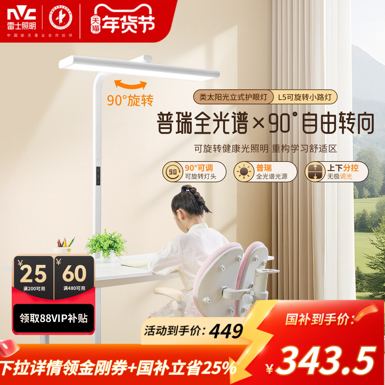 雷士照明台灯儿童学习护眼灯大路灯台灯专用儿童学习灯旋转小路灯