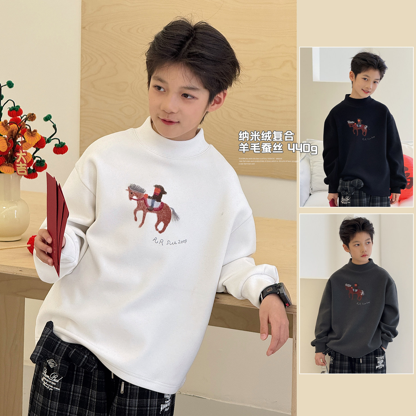 男童打底衫2025冬装马年新款儿童高领上衣纳米绒保暖内搭中大童T
