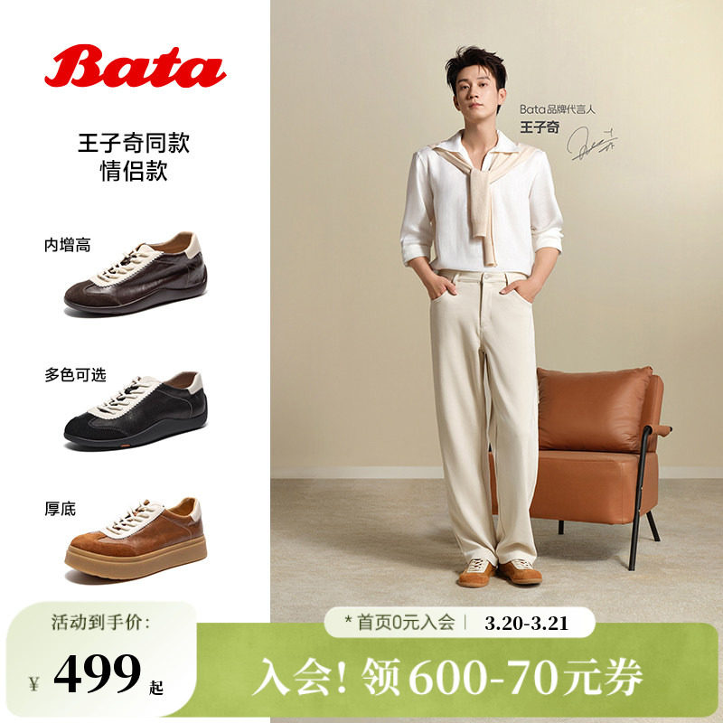 王子奇同款Bata羊皮书德训鞋26春商场软薄底复古休闲板鞋ALI45AM6