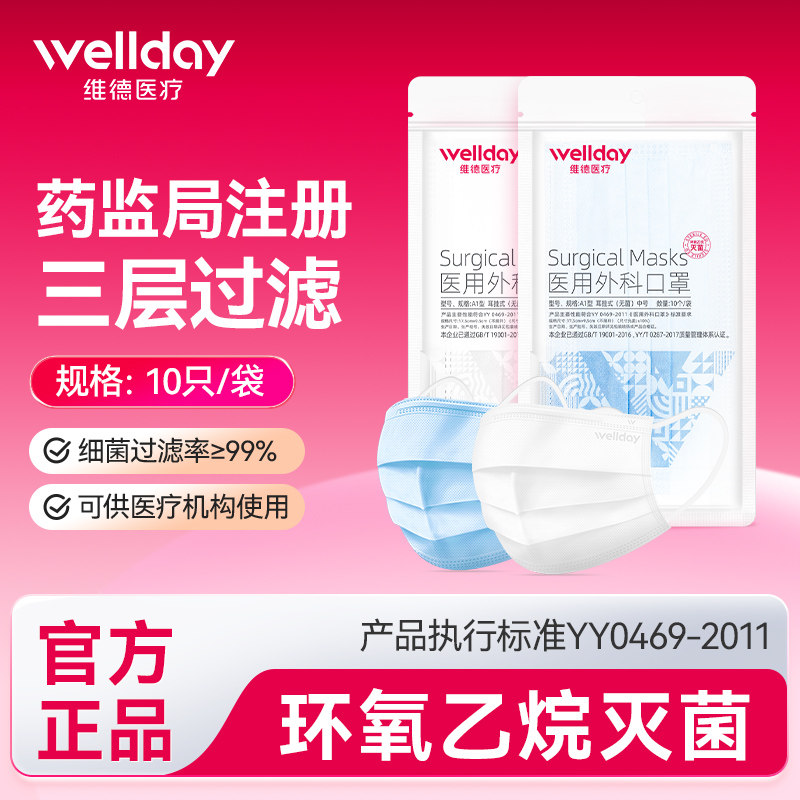 维德医疗口罩一次性医用外科口罩灭菌三层正品成人维德口罩独立