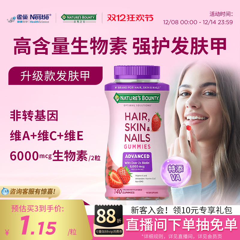 naturebounty雀巢自然之宝升级款发肤甲软糖女士复合维生素生物素