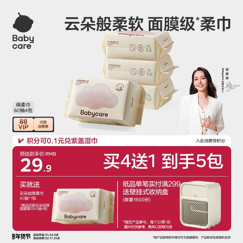 小蛮熊大包4包抽纸家用实惠装面巾餐巾纸卫生纸巾整箱批擦手
