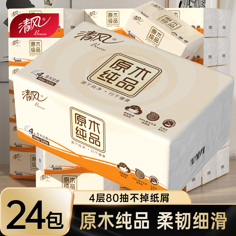 清风棉柔黑金抽纸4层加厚餐巾纸纸巾可湿水面巾纸家用压花卫生纸