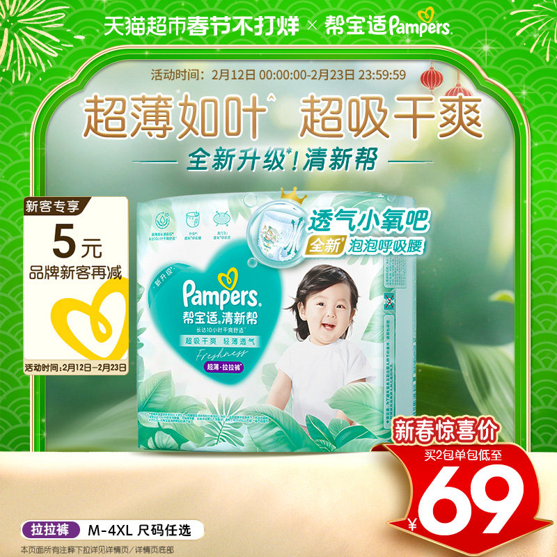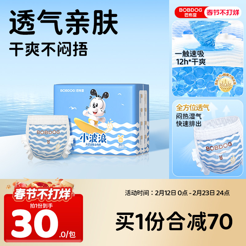 BOBDOG巴布豆小波浪拉拉裤干爽透气超柔亲肤婴儿尿不湿不闷捂1包
