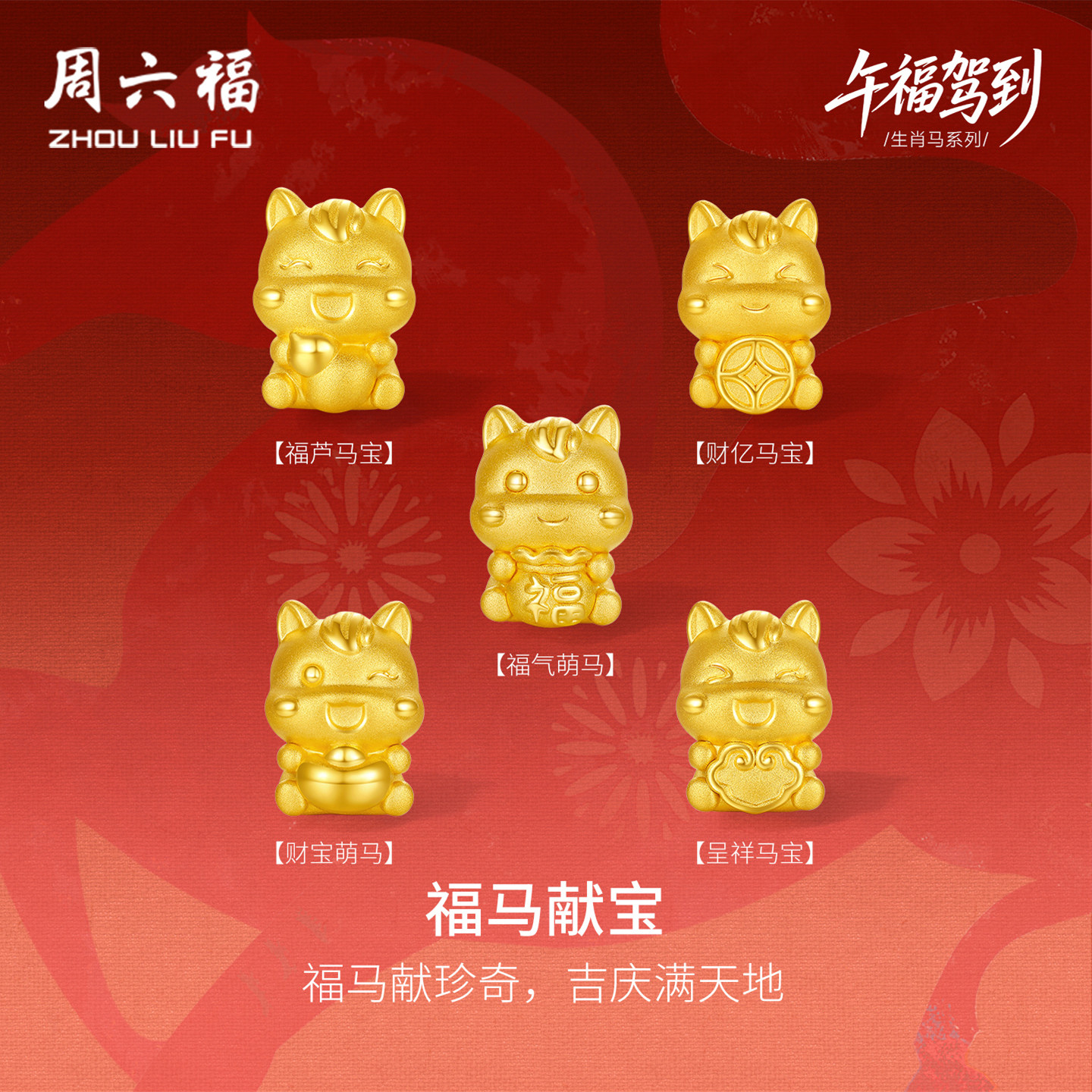 周六福5d硬金定价生肖转运珠黄金女福马献宝手绳黄金手串新年礼物