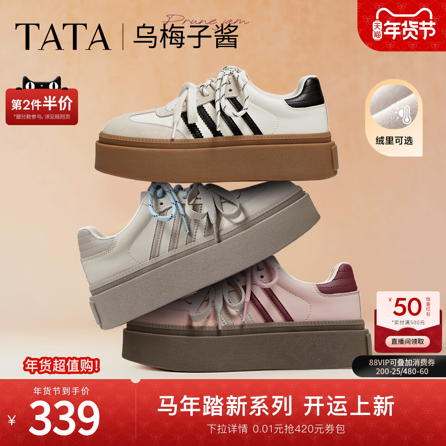 TATA他她乌梅子酱加绒复古德训鞋女红色新年增高厚底板鞋子W9B02