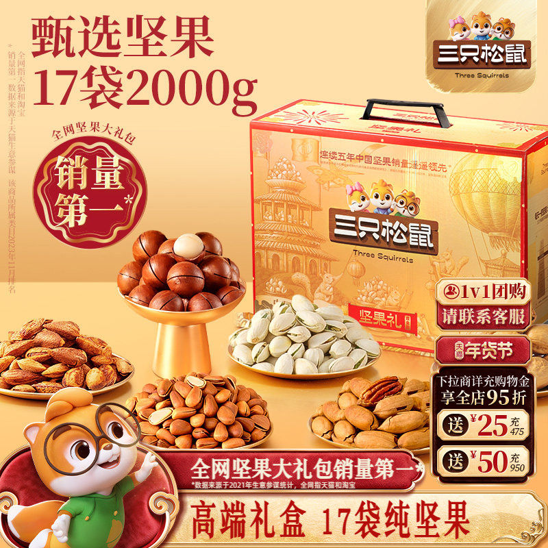 三只松鼠鼎金款年货坚果礼盒17袋/2000g送礼送长辈健康零食大礼包