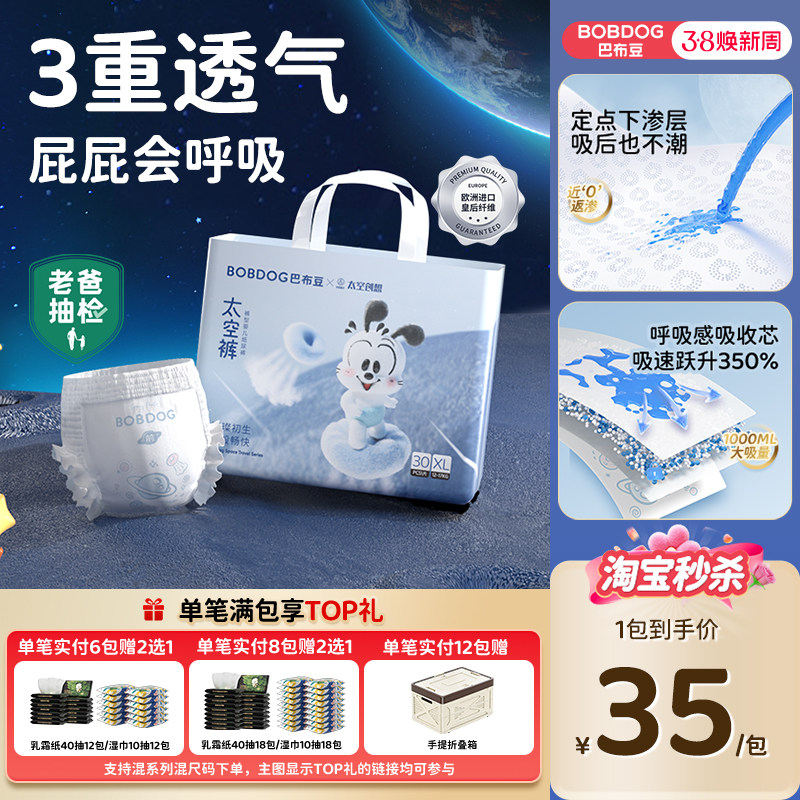 【淘秒】巴布豆太空裤呼吸款超薄透气裸感轻盈干爽纸尿拉拉裤