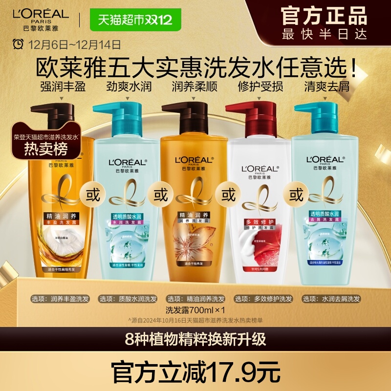 欧莱雅精油润养洗发水透明质酸洗发露柔顺滋养防毛躁无硅油去头屑
