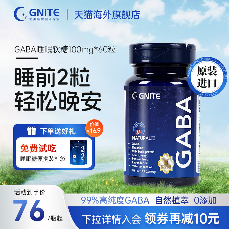 gaba睡眠软糖助眠褪黑素睡眠片美国进口茶氨基丁酸gnite官方旗舰