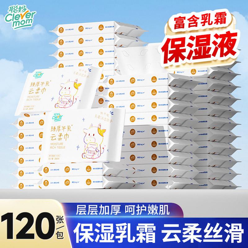 聪妈抽纸纸巾大包整箱批家用实惠装可湿水婴儿卫生纸餐巾纸面巾纸