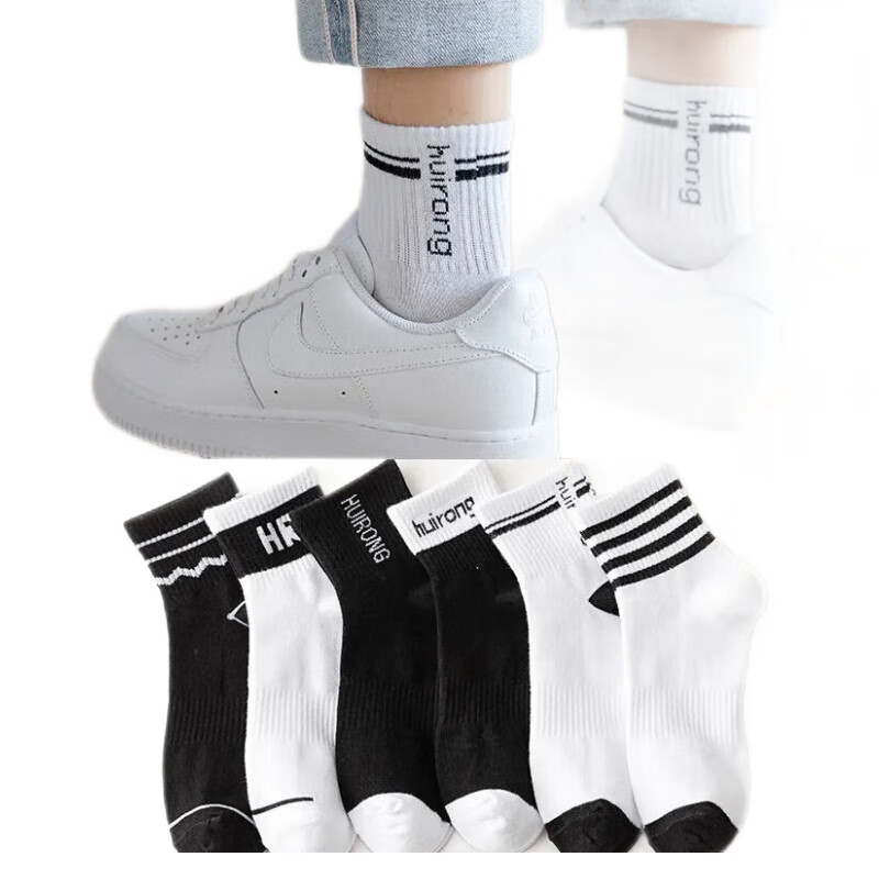 莫代尔 男士中筒袜 10双黑白