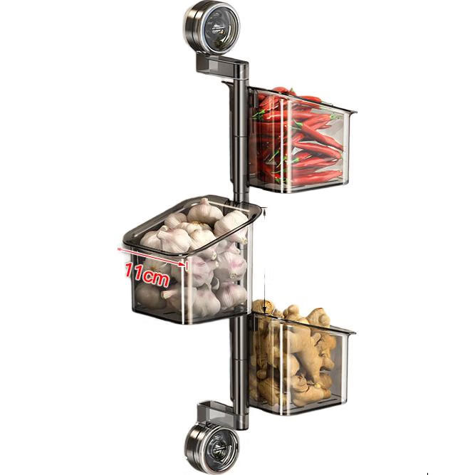 【网红爆款】双吸盘葱姜蒜收纳盒大容量旋转厨房多层壁挂式 透明色3层