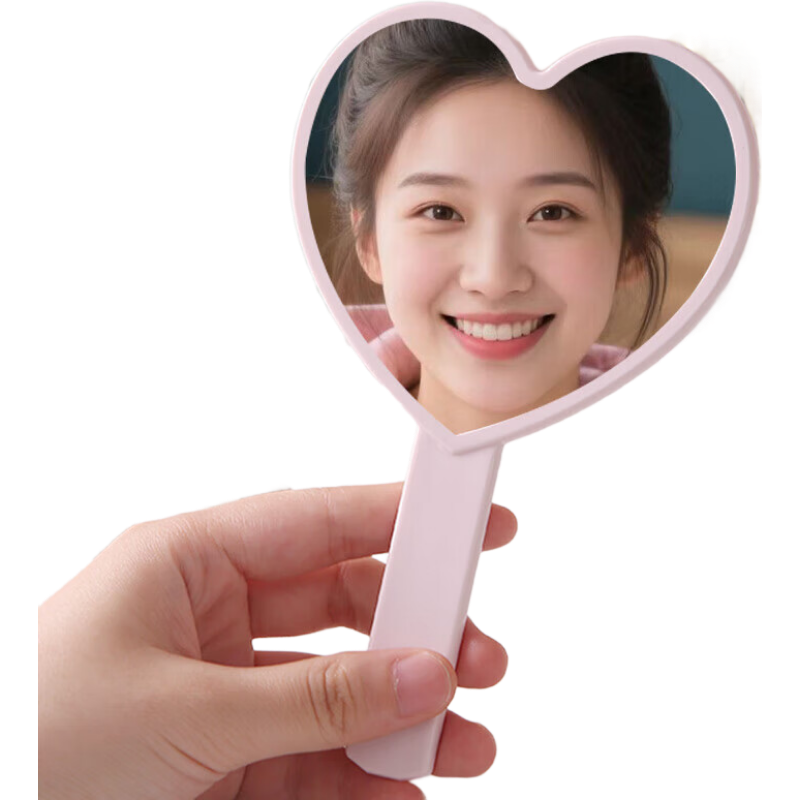 ins爱心手柄化妆镜 粉色