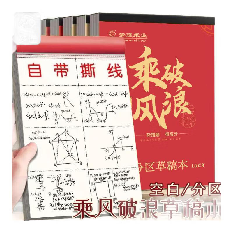 800页学霸草稿纸加厚分区可撕考研励志文字草稿本空白纸张学生用数学运算打草演算练习验算批发 分区款【每本100张200页】 1本装