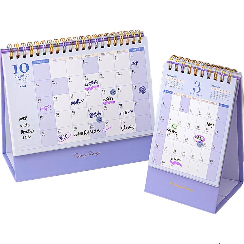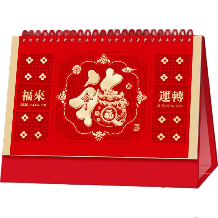 台历2026年创意简约办公计划本 商务记事备忘可爱桌面摆件月历2025广告年历马年每日工作打卡日历 【大号】浮光锦云-浮光红
