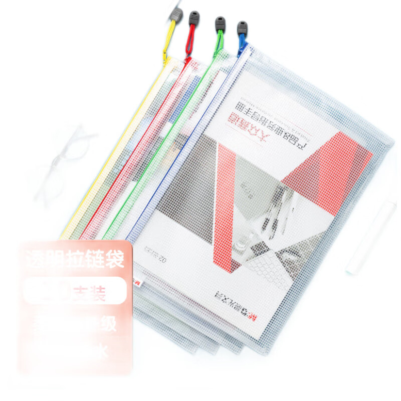 晨光(M&G)文具 10个装 A4 网格拉链袋 软质小学生科目分类文件袋 试卷考试收纳 办公学习用品 ADM945M7