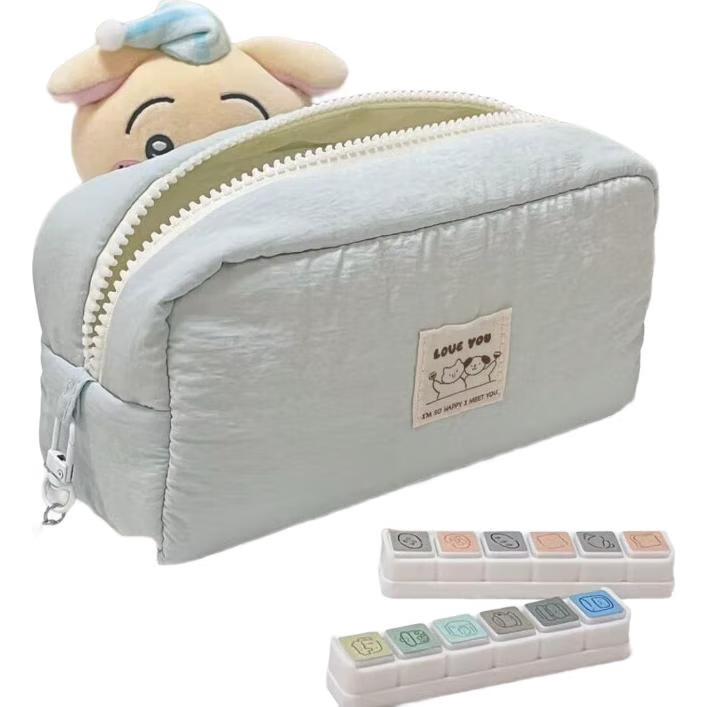 【笔袋文具盒文具文件袋开学特价】小红书同款粉色猫咪墩墩包笔袋ins高颜值少女心笔盒文具收纳袋 浅蓝墩墩猫笔袋-1个 墩墩豆腐包~20*10*7