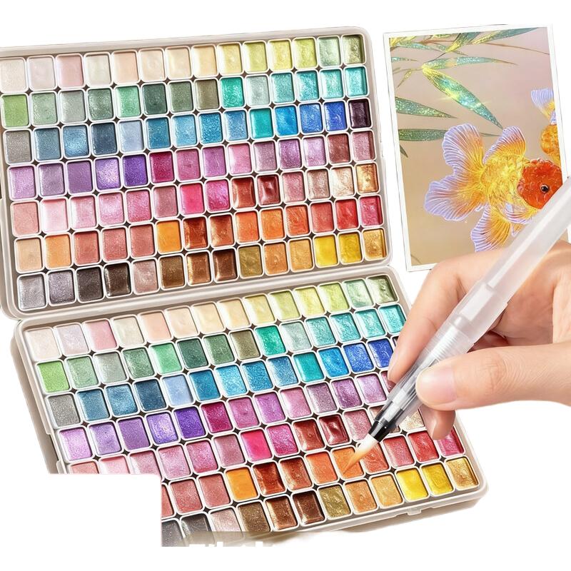 敦煌珠光水彩青竹马利同款固体不透明彩绘颜料画画工具套装美术生专用儿童小学生水粉便携式分装盒 【36色】故宫全色/送调色盘+水画笔