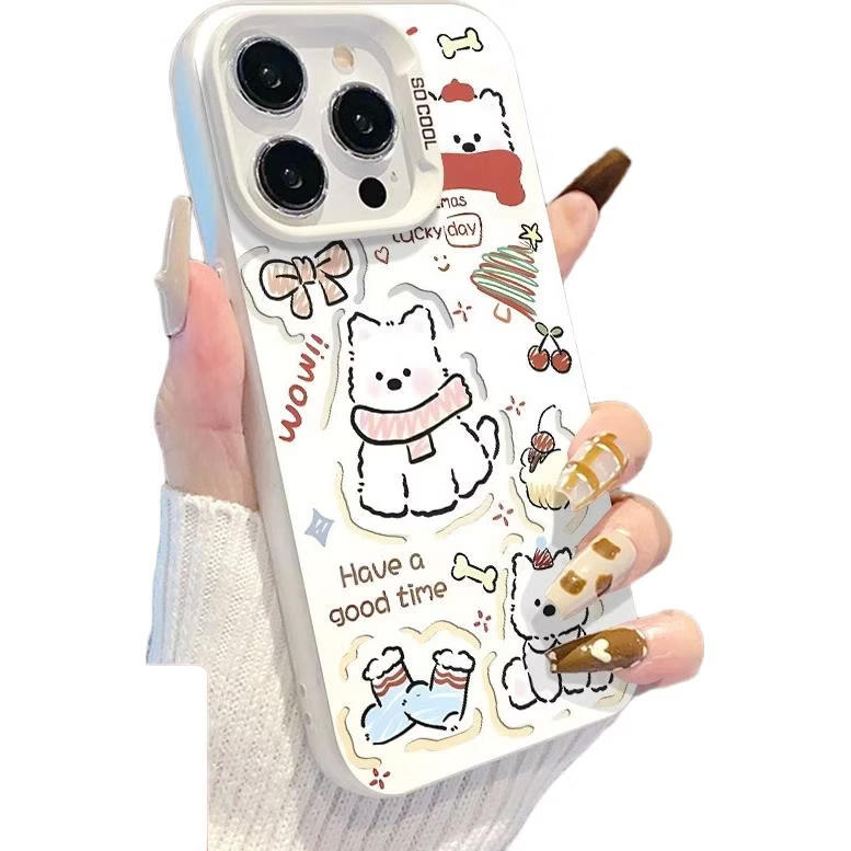围巾圣诞小狗适用iphone17手机壳可爱苹果华为vivo/小米17PROMAX/OPPO创意荣耀彩银防摔套 镭射彩色-银色-XXSC556围巾圣诞小狗 OPPORENO15