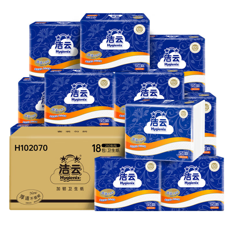 洁云家用卫生纸 250张*18包