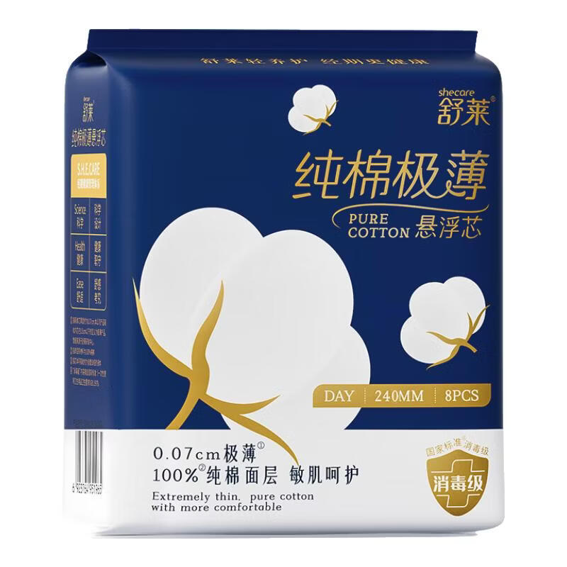 舒莱 消毒级纯棉卫生巾 8片