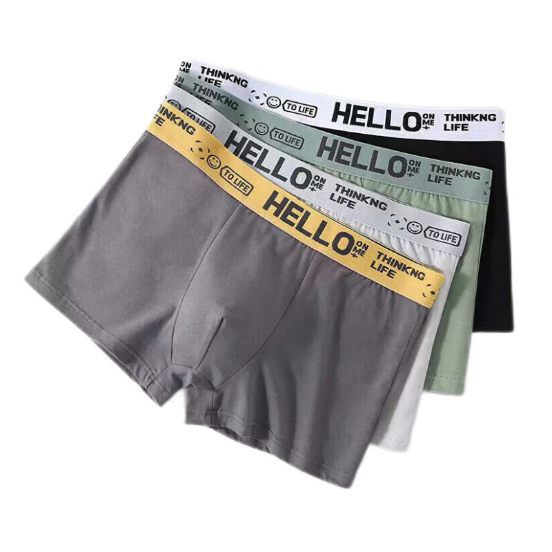 Hello男士内裤男中腰高弹透气男平角裤亲肤男生宽松大码短裤头 【2条装】黑色+浅灰 4XL 【建议体重165-185斤】