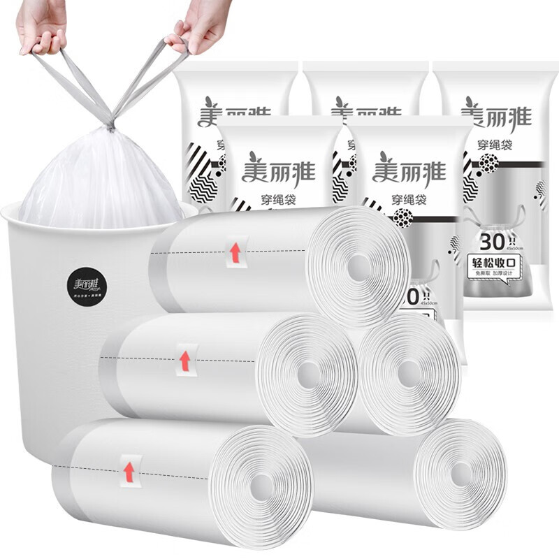 美丽雅 加厚抽绳垃圾袋150只