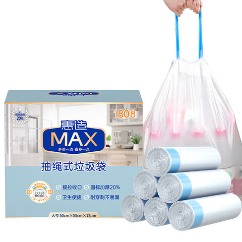惠造 特厚抽绳垃圾袋 180只