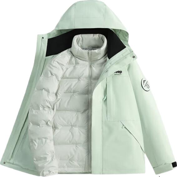 JEEP SPIRIT【90白鸭绒】情侣户外服冲锋衣女款秋冬三合一户外防风登山滑雪服 零下20°可穿/男女同款/羽绒内胆/黑色 2XL(建议135-155斤)