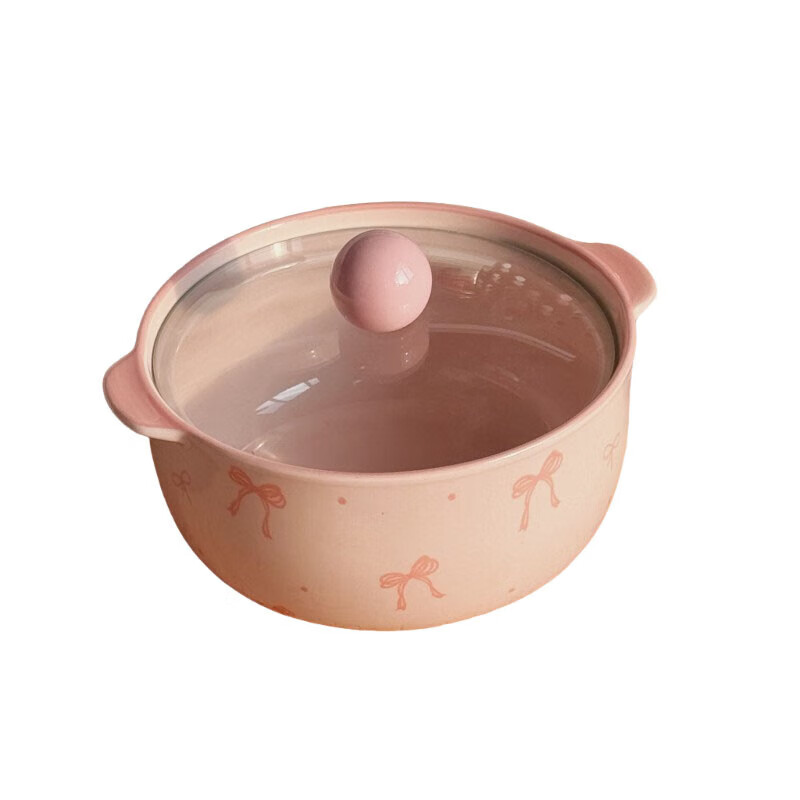 粉色蝴蝶结大号陶瓷泡面带盖螺蛳粉碗面碗高颜值釉下彩好看少女心 【粉色】 蝴蝶结-泡面碗 泡面碗+盖 【二件套】