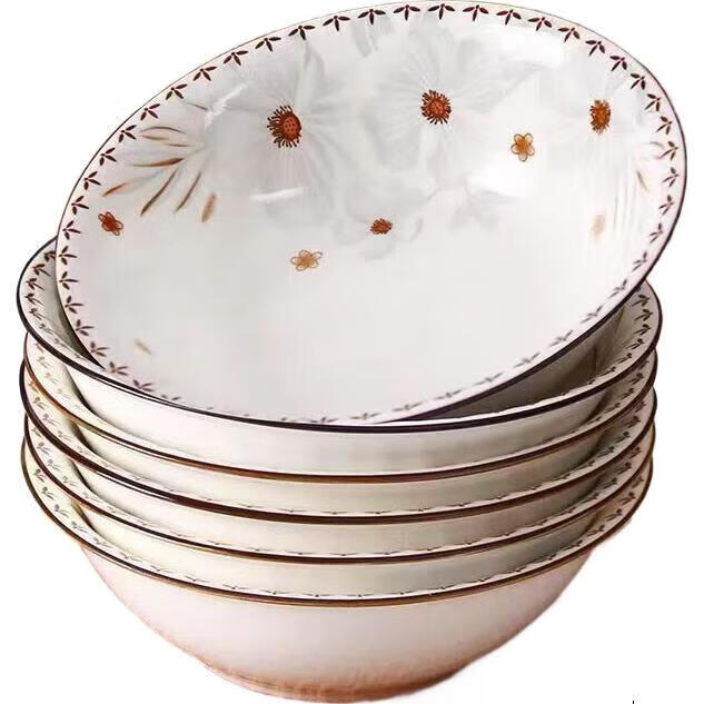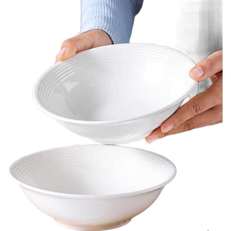 纯白横纹7英寸斗碗简约大碗家用陶瓷釉下彩白瓷餐具 1个装7英寸横纹斗碗