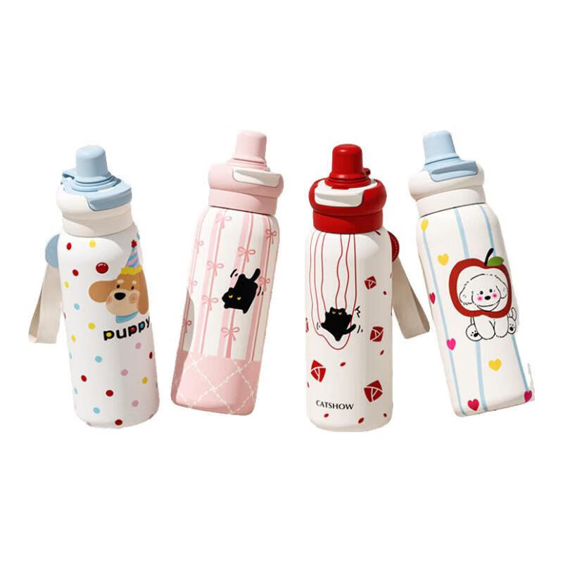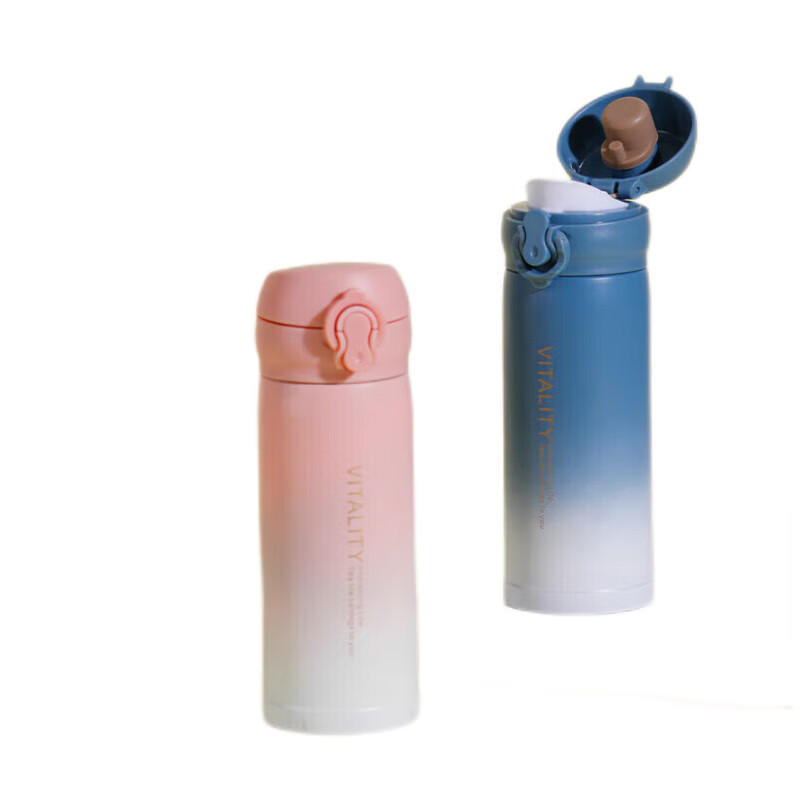 【京东物流】渐变304不锈钢学生男女保温杯简约弹跳盖便携保温 蓝白渐变-300ML