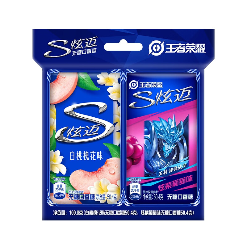 炫迈 无糖口香糖 白桃葡萄味28片50.4g*2盒 糖果 零食 清新口气