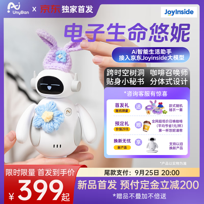 UNYBAN悠妮AI情感陪伴桌面对话机器人工作生活助理音乐创作跳舞养成系秒杀:¥0.01元¥599.000.0折时间:10月31日 18:00:00