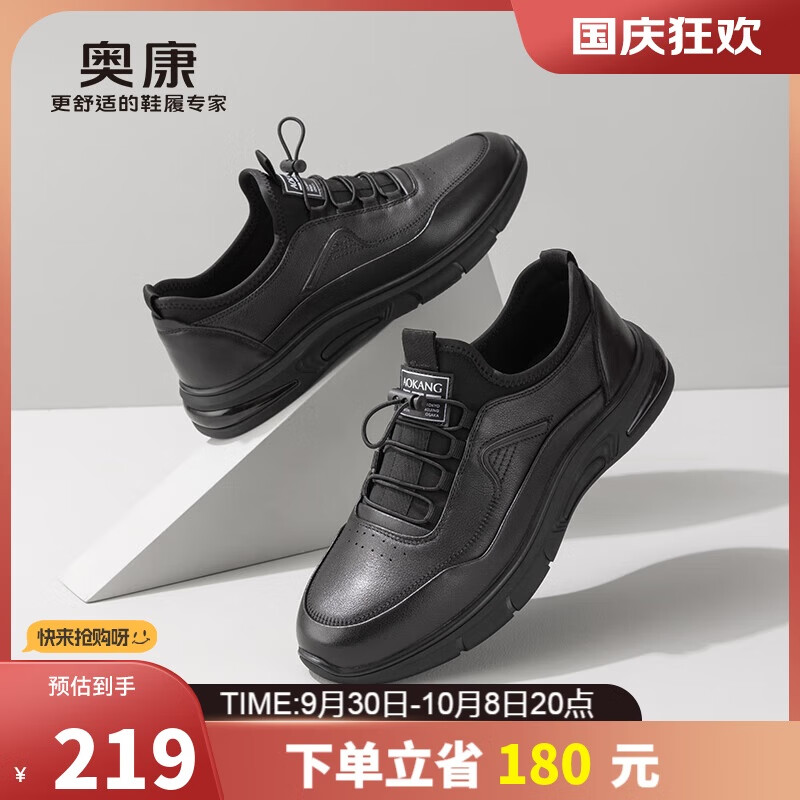 奥康(Aokang)跑步男士商务休闲运动皮鞋男黑色41码